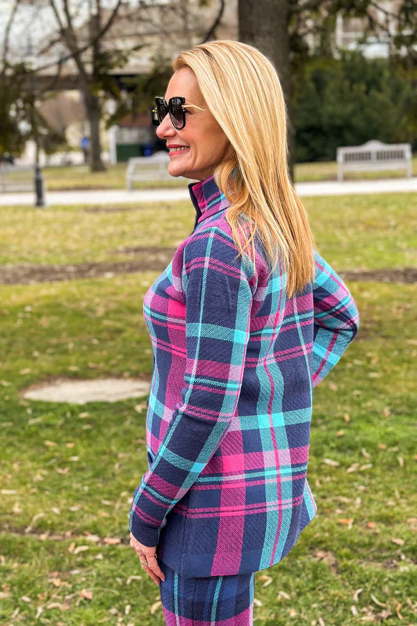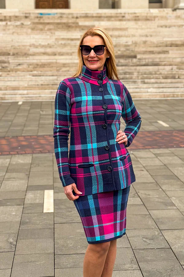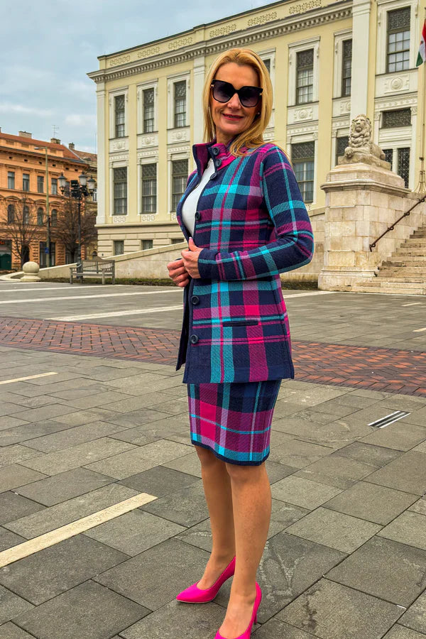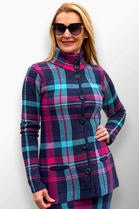 Gitta Navy Blue Knitted Jacket with Checkered Pattern